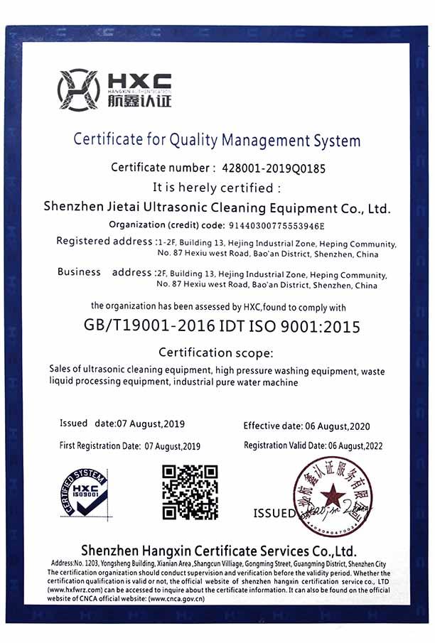 ? ? ? ?深圳市潔泰超聲洗凈設(shè)備有限公司成立于2005 年,公司位于中國高新技術(shù)最密集的深圳寶安區(qū),公司主要從事環(huán)保超聲波清洗設(shè)備、廢水凈化設(shè)備、表面處理設(shè)備及配套設(shè)備,是一家集研發(fā)、生產(chǎn)、銷售、工程服務(wù)為一體的高新科技企業(yè)。