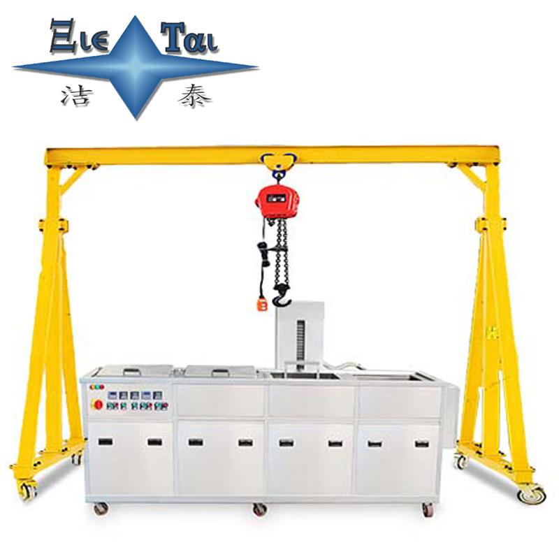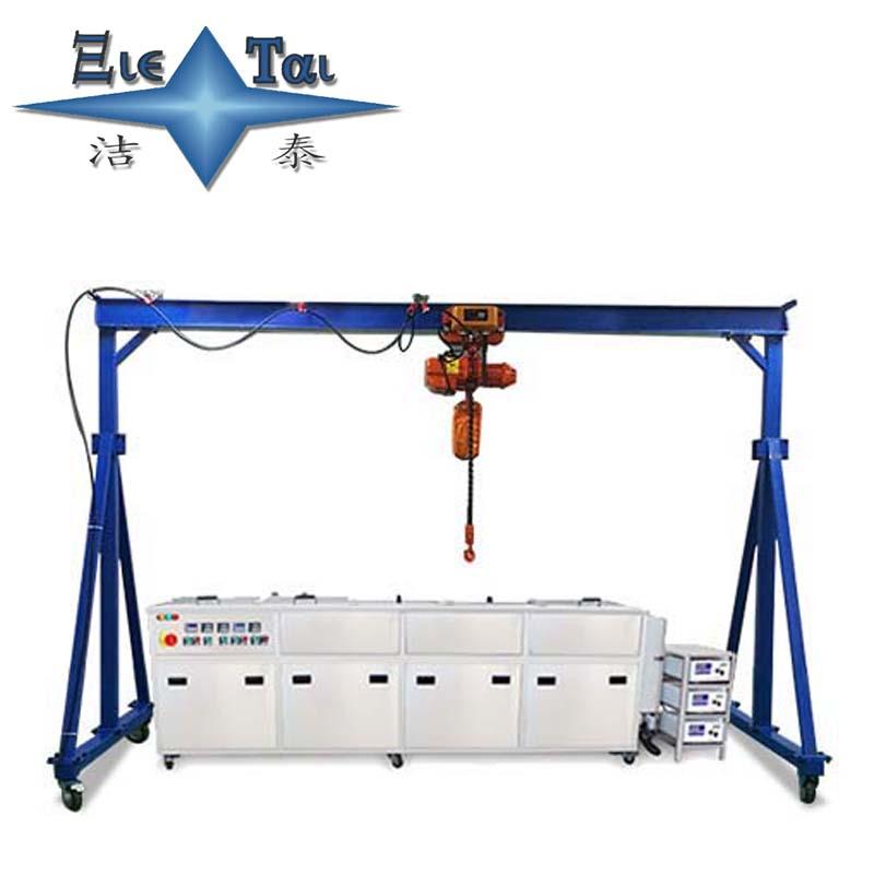 潔泰行吊式超聲波清洗機(jī)也叫電動(dòng)葫蘆多槽式超聲波清洗機(jī),一般都是按照客戶工件需求來進(jìn)行設(shè)計(jì)制造。該產(chǎn)品可以選擇超聲波清洗,超聲波漂洗,熱浸泡,壓縮空氣攪拌浸泡,烘干,化學(xué)拋光,上油等工藝或工序組合,由于采用多道清洗方式,清洗液能夠多級(jí)精密過濾,可以有效保證產(chǎn)品的清潔度,按客戶要求設(shè)計(jì)洗凈流程。